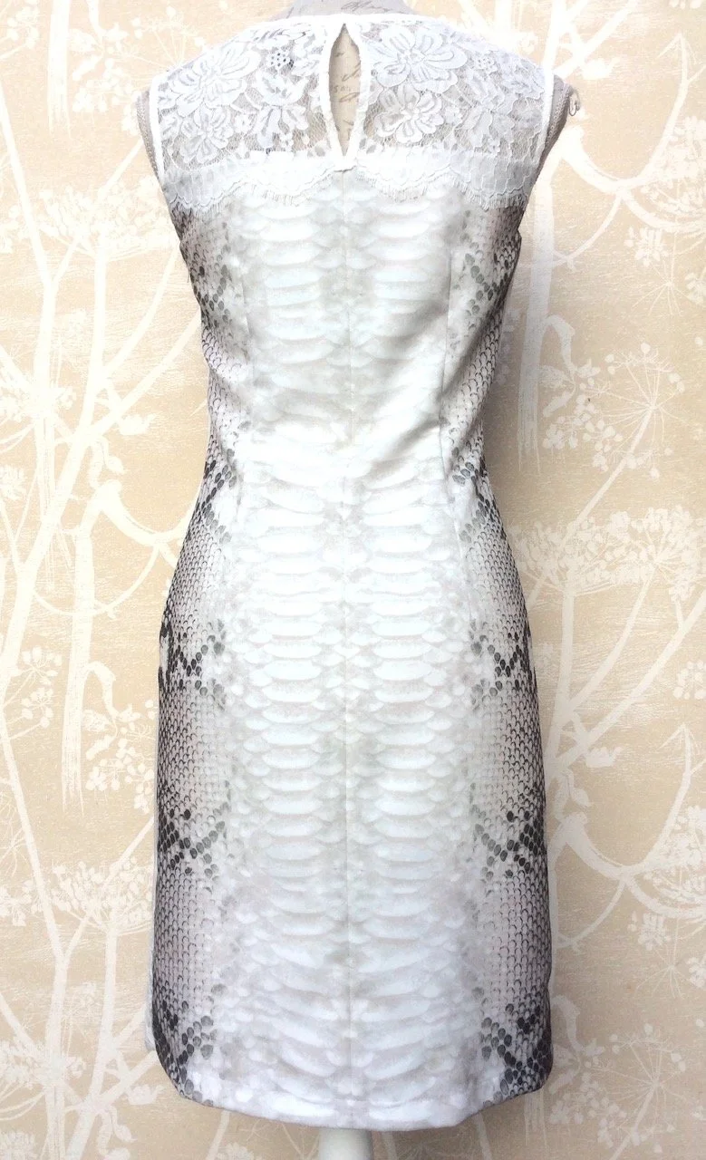 This dress is such a pretty mix of colours, with a subtle snakeskin printed background it has then been over printed with a pretty mix of flowers and gems.